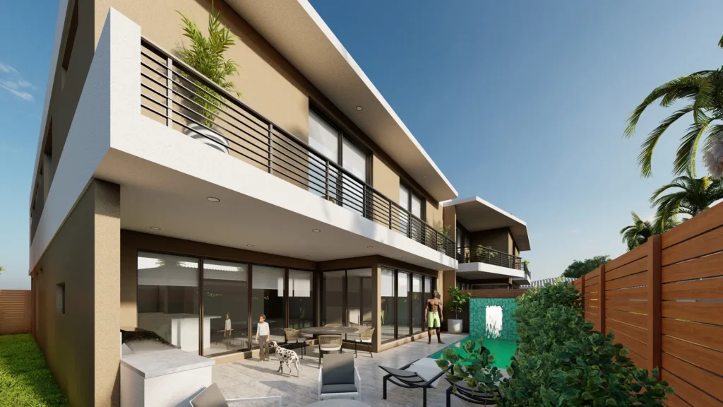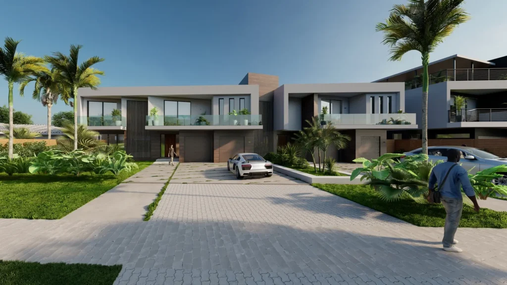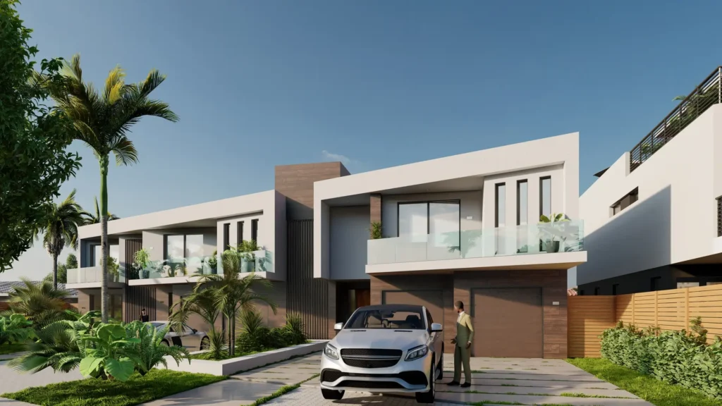 This duplex project rethinks the typical typology through scale, proportion, and composition. The wider-than-average lot allowed the design to read less like a traditional duplex and more like a cohesive single-family residence. The architecture is defined by strong horizontal volumes, framed upper-level balconies, and a layered material palette that balances modern lines with warmth. The entry sequence is intentionally open, offering glimpses into the interior living spaces while maintaining a sense of privacy. Each unit includes four bedrooms and four bathrooms, with living spaces that extend seamlessly into generous outdoor areas. Designed for South Florida living, both residences prioritize indoor-outdoor connections, natural light, and functional layouts that support everyday use.